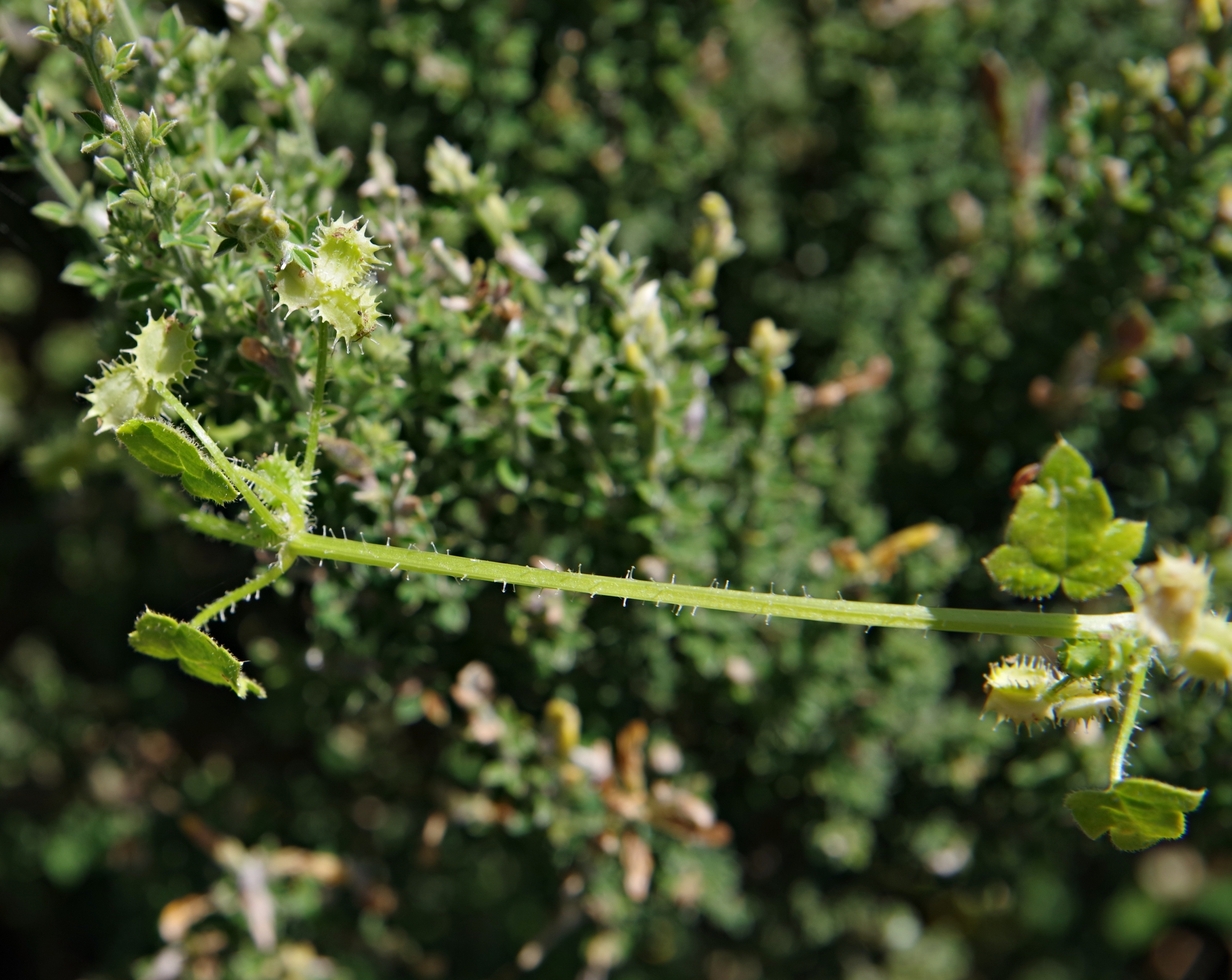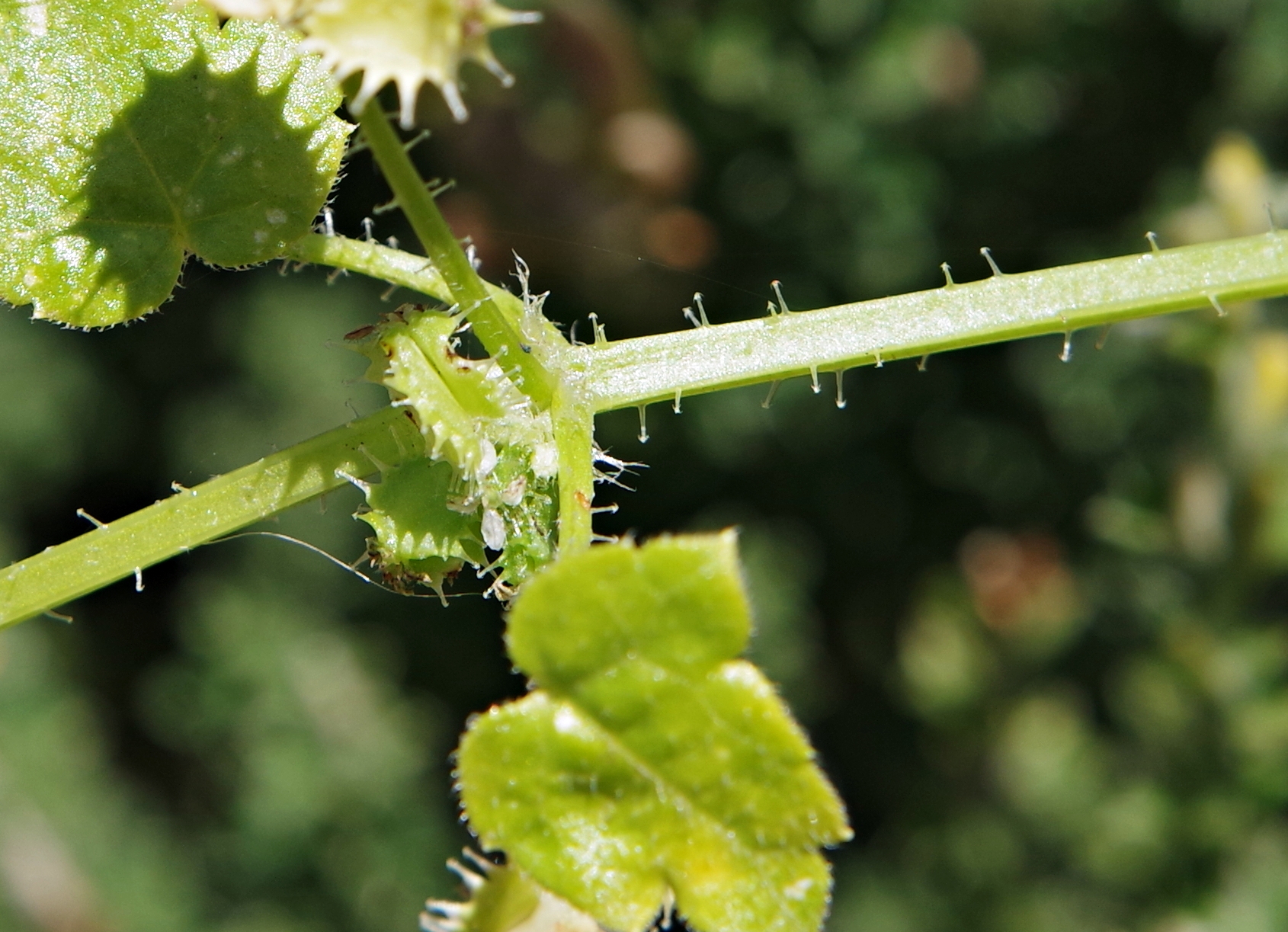 roślina jednoroczna (T) lub krótkotrwała bylina (H), do 60(200) cm dł., łodygi pnące, czepne, pokryte włoskami gwiazdkowatymi, gruczołowatymi oraz glochidami (krótkimi cierniami z kotwiczkowatym zakończeniem, ułatwiającem przyczepianie się do podpory), liście długoogonkowe, blaszka 3-5-klapowa, owłosiona, do 8 cm dł., kwiaty po 2-5 w baldaszkach na krótkich szypułach wyrastających z kątów liści, białe, pokrywek brak, III-V, owocem rozłupnia, rozłupki do 0,8 cm dł., oskrzydlone, z glochidami na brzegu