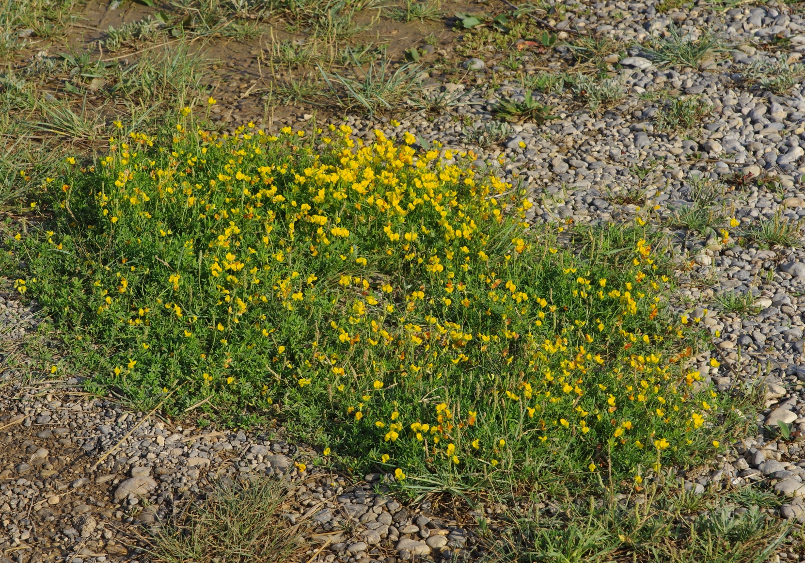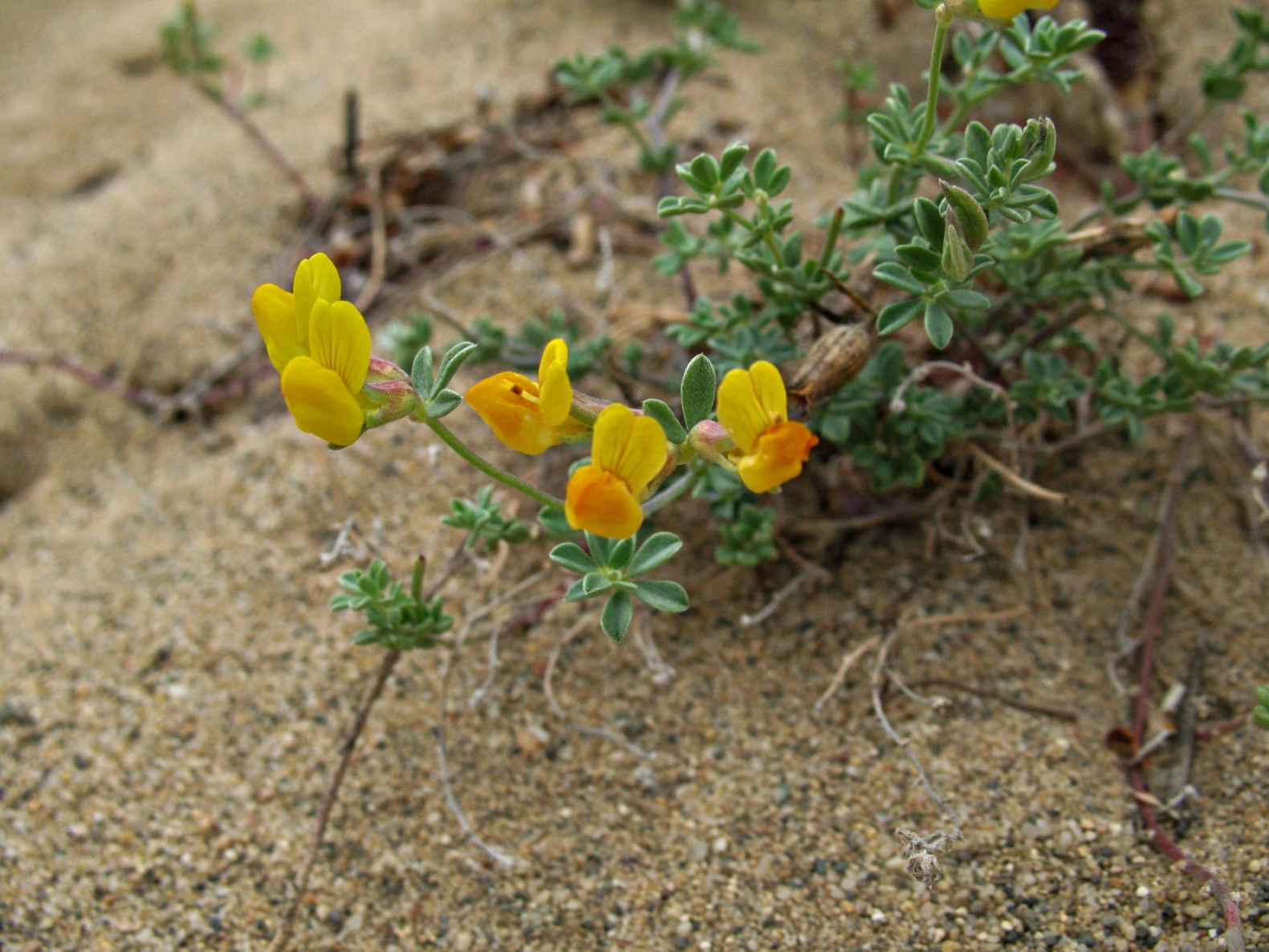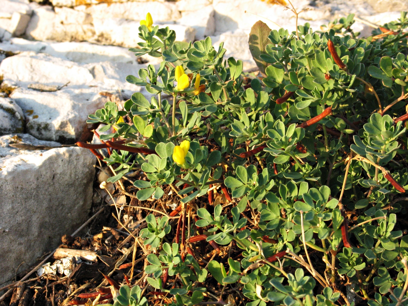 bylina (H), do 40 cm dł., rozesłana i podnosząca się, srebrzyście owłosiona lub prawie naga, łodyga rozgałęziona od nasady, liście 5-listkowe, listki odwrotnie jajowate, przylegająco owłosione lub nagie, lekko mięsiste, do 0,7 cm dł., kwiaty w szczytowych kwiatostanach po 2-4, jasnożółte, do 1,5 cm dł., łódeczka na szczycie niekiedy purpurowa, III-VI, owocem cylindryczny strąk, prosty lub lekko zgięty, do 2,5 cm dł.