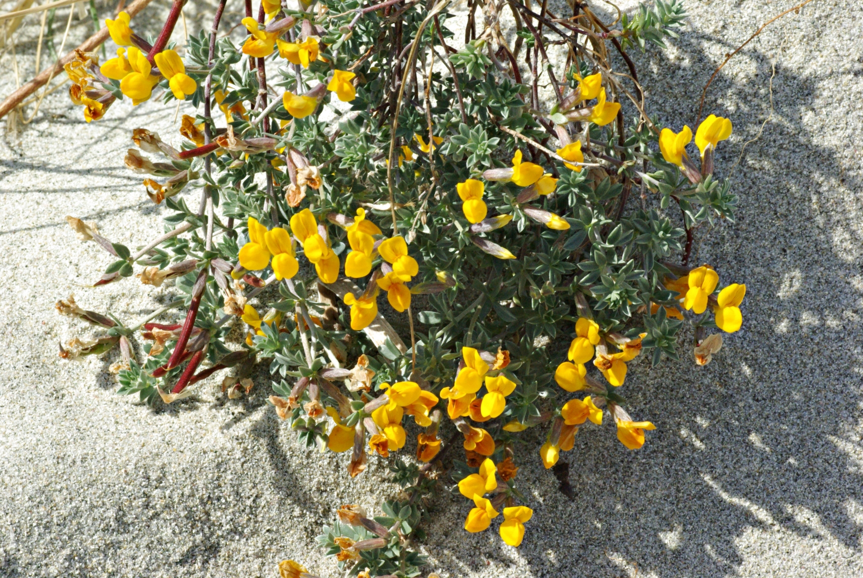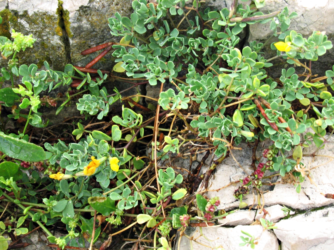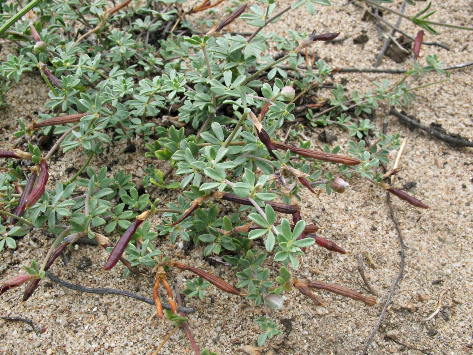 bylina (H), do 40 cm dł., rozesłana i podnosząca się, srebrzyście owłosiona lub prawie naga, łodyga rozgałęziona od nasady, liście 5-listkowe, listki odwrotnie jajowate, przylegająco owłosione lub nagie, lekko mięsiste, do 0,7 cm dł., kwiaty w szczytowych kwiatostanach po 2-4, jasnożółte, do 1,5 cm dł., łódeczka na szczycie niekiedy purpurowa, III-VI, owocem cylindryczny strąk, prosty lub lekko zgięty, do 2,5 cm dł.