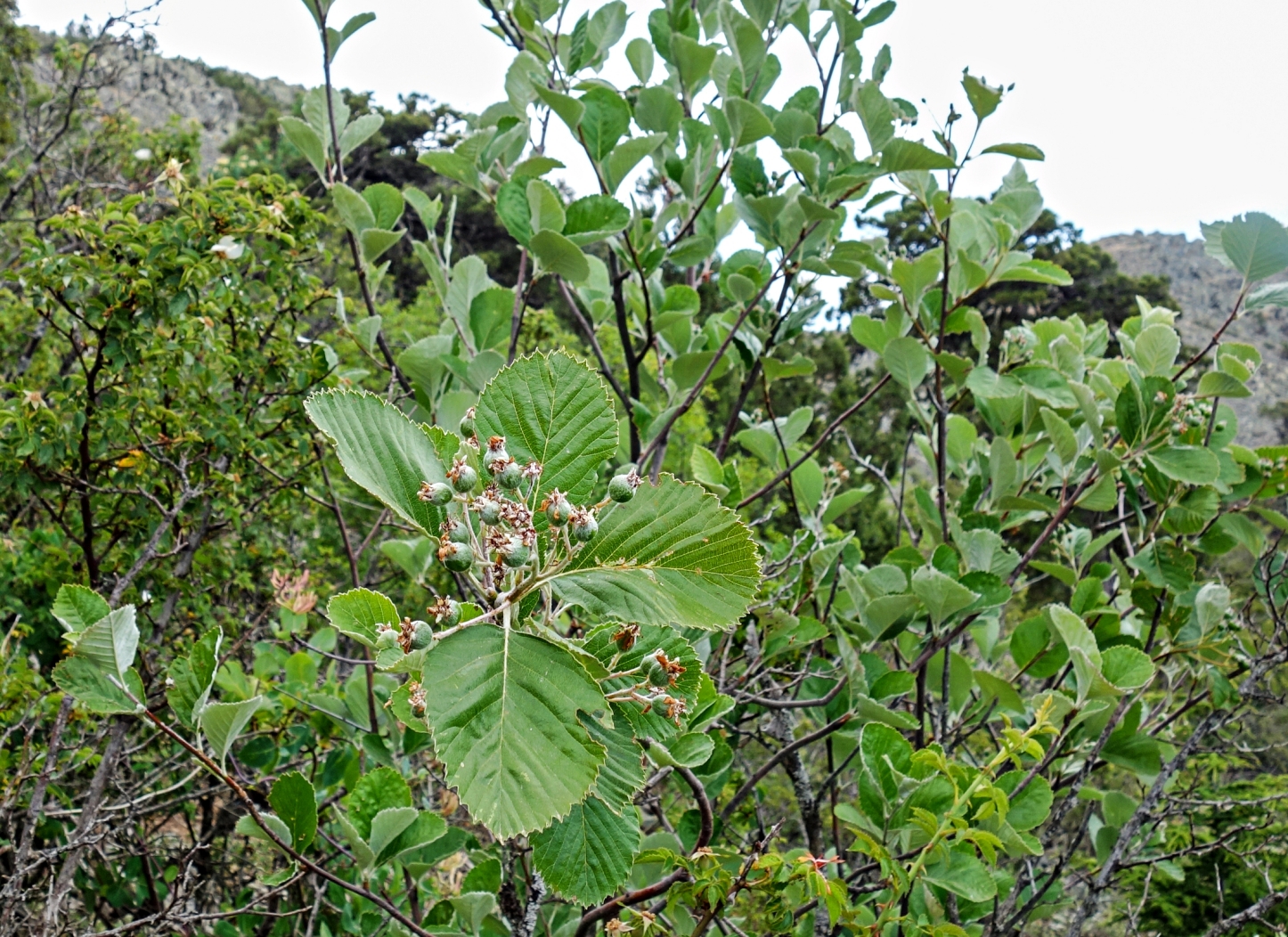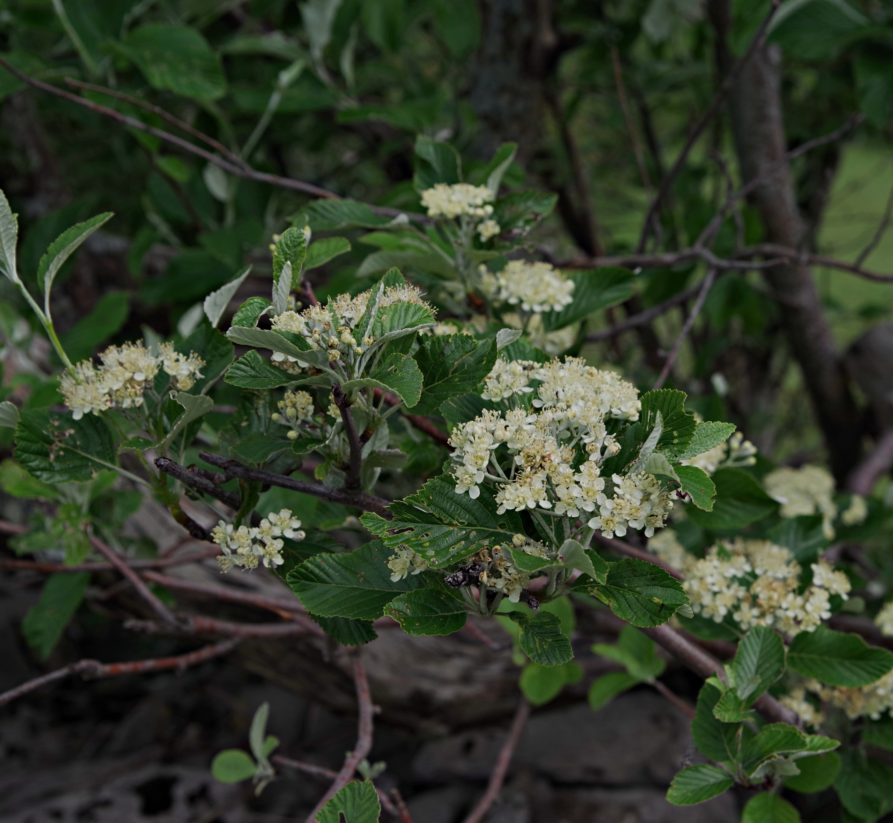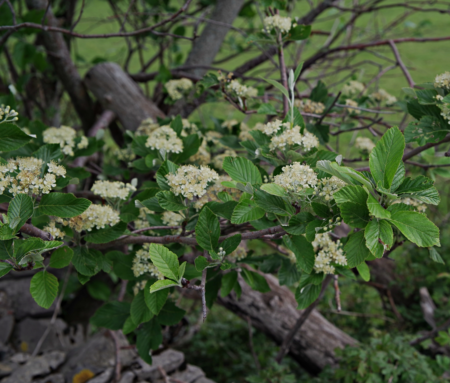 drzewo (F) lub krzew (nF), do 15 m wys., zazwyczaj wiele pni, kora ciemoszara, gładka, młode gałązki czerwonobrunatne, pajęczynowato owłosione, liście eliptyczne lub jajowate, z wierzchu ciemnozielone, od spodu białokutnerowate, brzeg podwójnie piłkowany, do 12 cm dł., kwiaty w baldachokształtnych kwiatostanach, białe, V-VI, owoc jabłkowaty, kulisty, czerwony, do 1,5 cm śred.