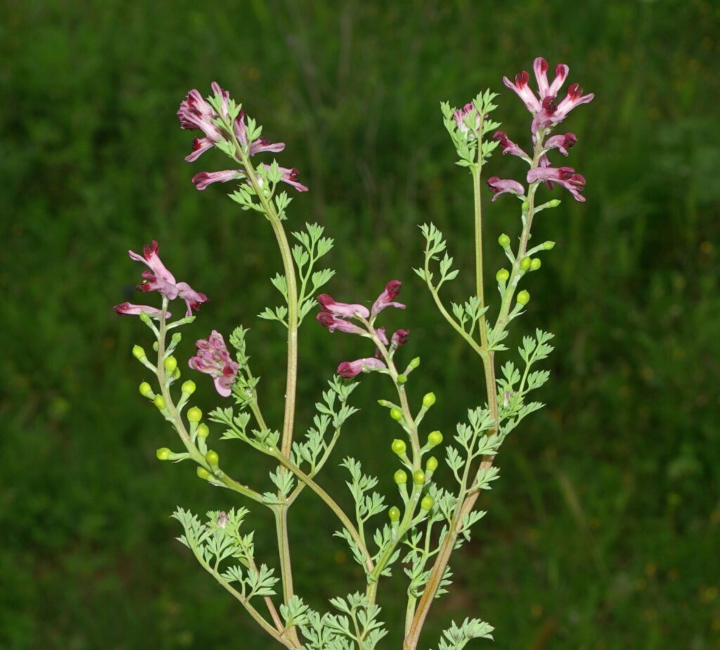 roślina jednoroczna (T), do 30 cm wys., łodyga rozgałęziona, naga, pokładająca się lub wzniesiona, liście potrójnie pierzastosieczne, odcinki równowąskie, kwiatostan szczytowy, do 20 kwiatów różowych z ciemnopurpurowym zakończeniem, do 0,6 cm dł., V-IX, owocem kulista niełupka z dzióbkiem na szczycie