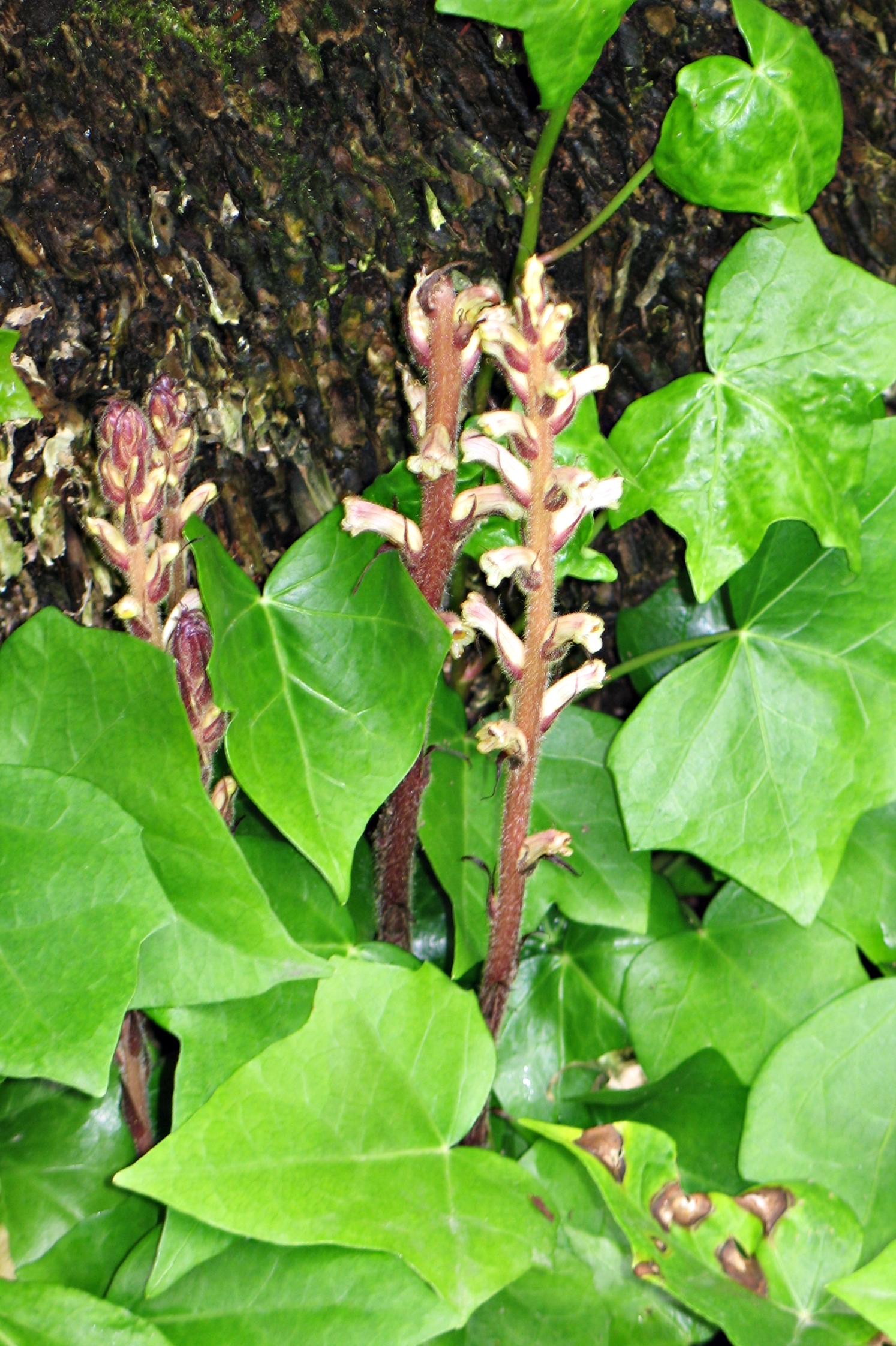 miejsca skaliste, kamieniste, polany leśne, czasem w terenach ruderalnych, pasożytuje na różnych gatunkach bluszczu (Hedera)