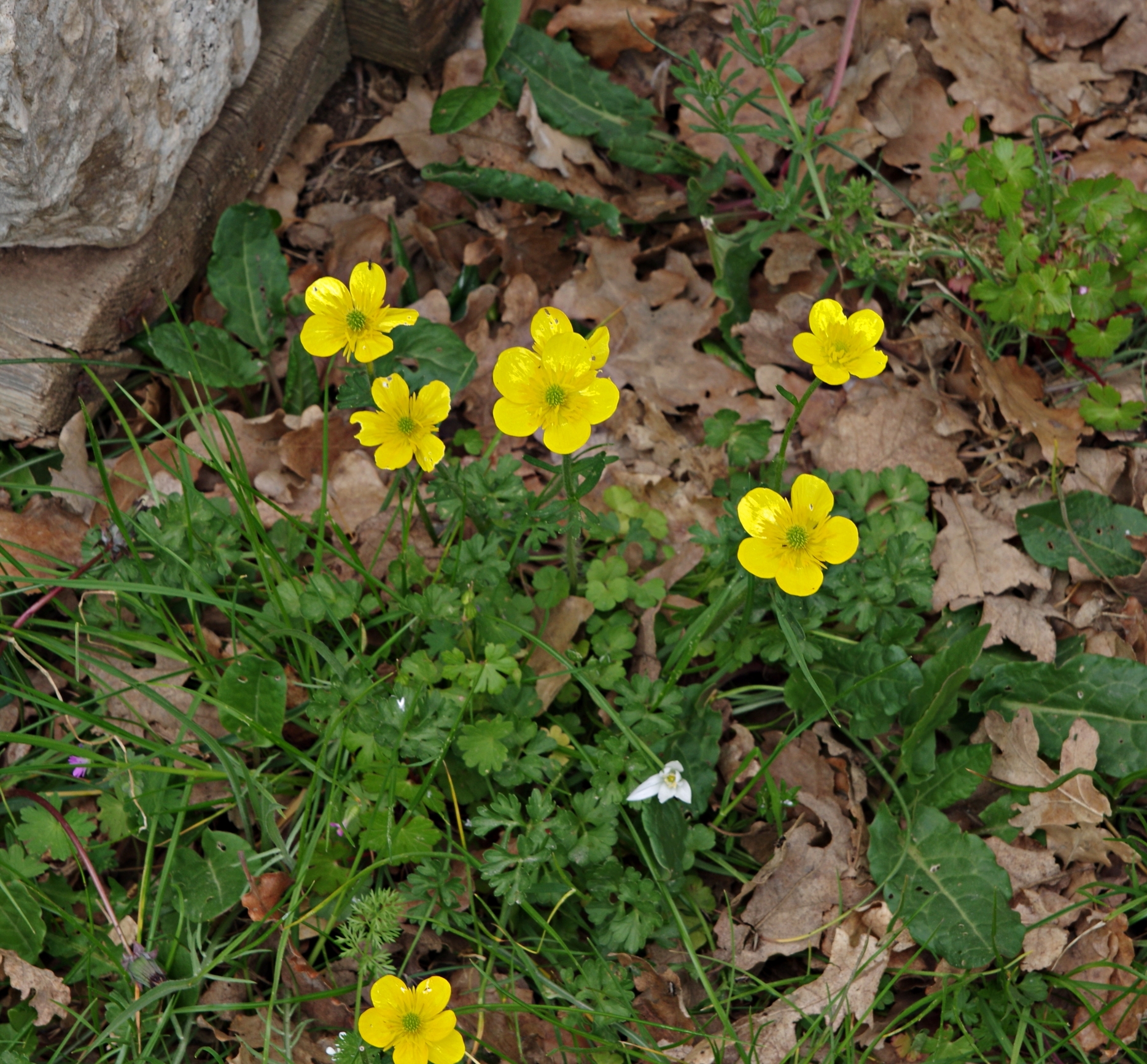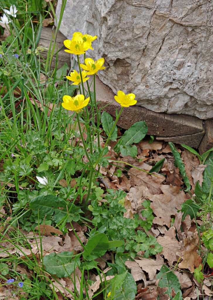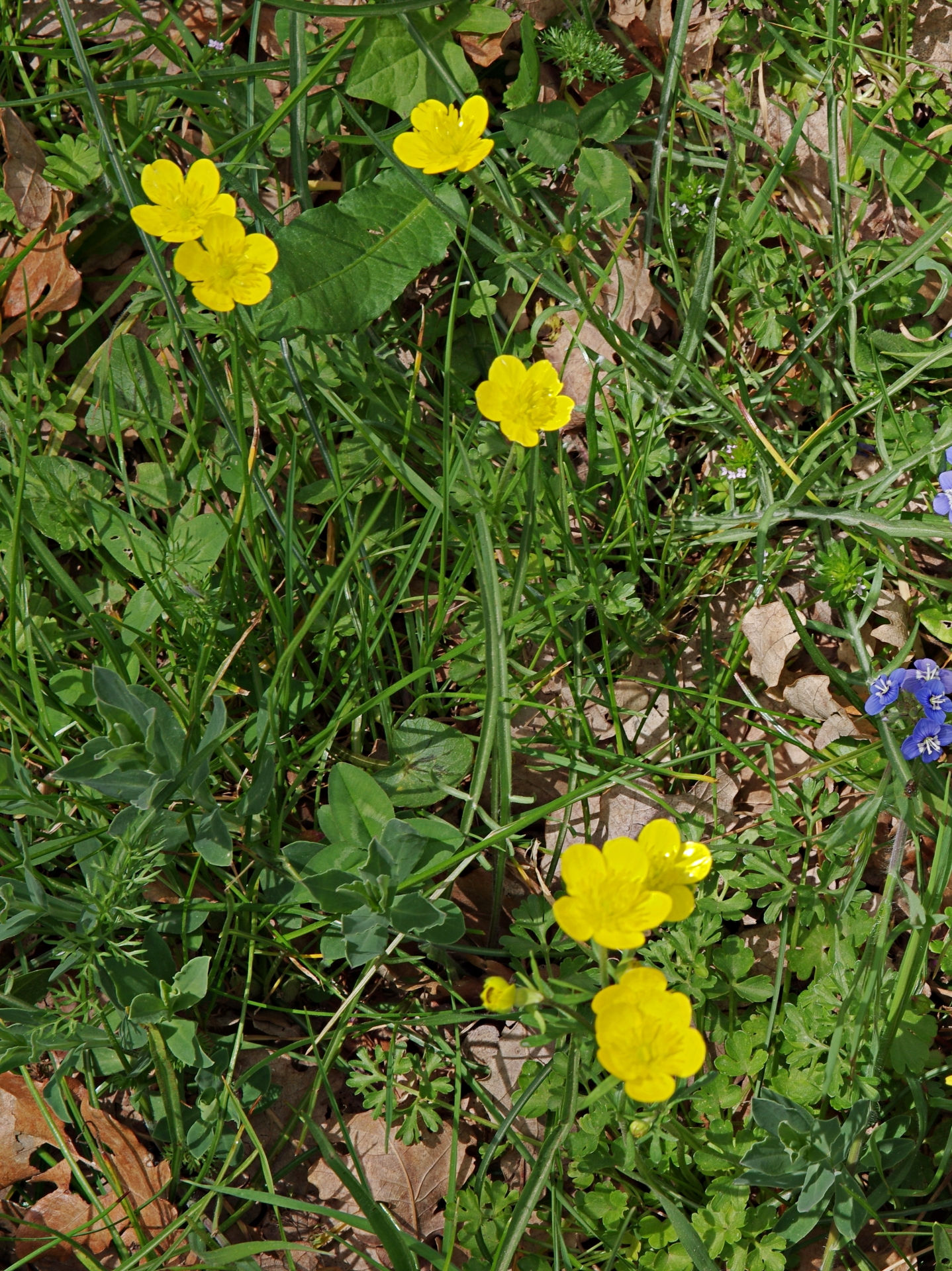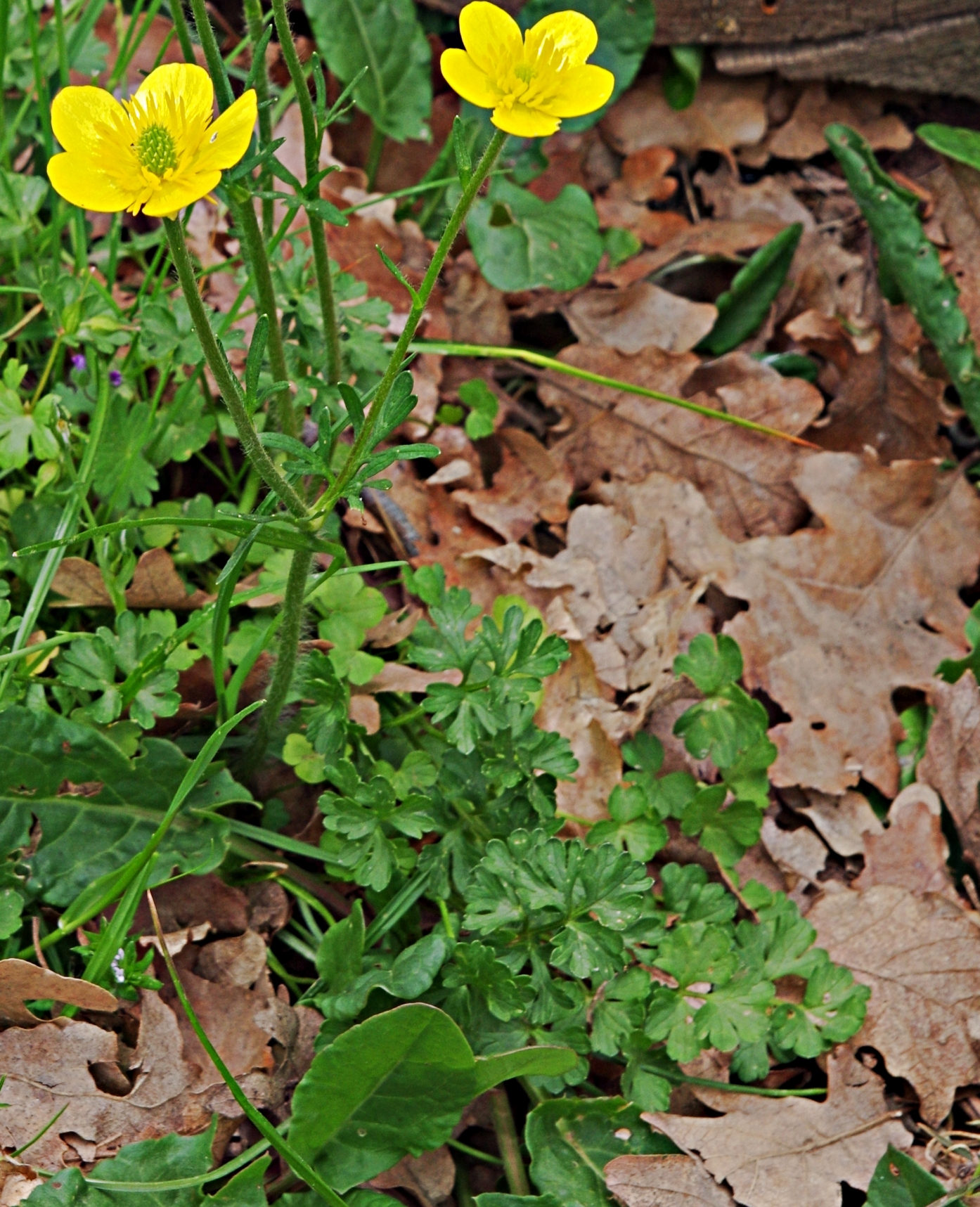 bylina (H), 10-30 cm wys., łodygi wzniesione, słabo owłosione, liście odziomkowe ogonkowe, w zarysie szeroko trójkątne do okrągłych, głęboko 3-klapowe, klapy pocięte na kilka zaokrąglonych segmentów, łodygowych brak lub głęboko pocięte, kwiaty przeważnie pojedynczo, żółte, do 2 cm śred., płatki odwrotnie jajowate, zaokrąglone, działki odgięte, III-VI, owocem spłaszczony orzeszek z lekko zagiętym dzióbkiem, do 0,3 cm dł.