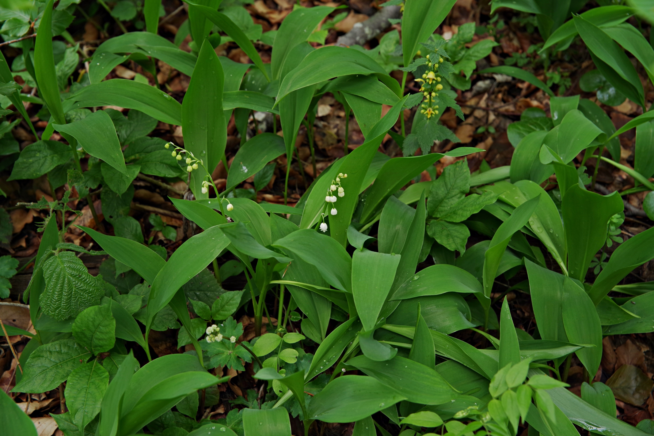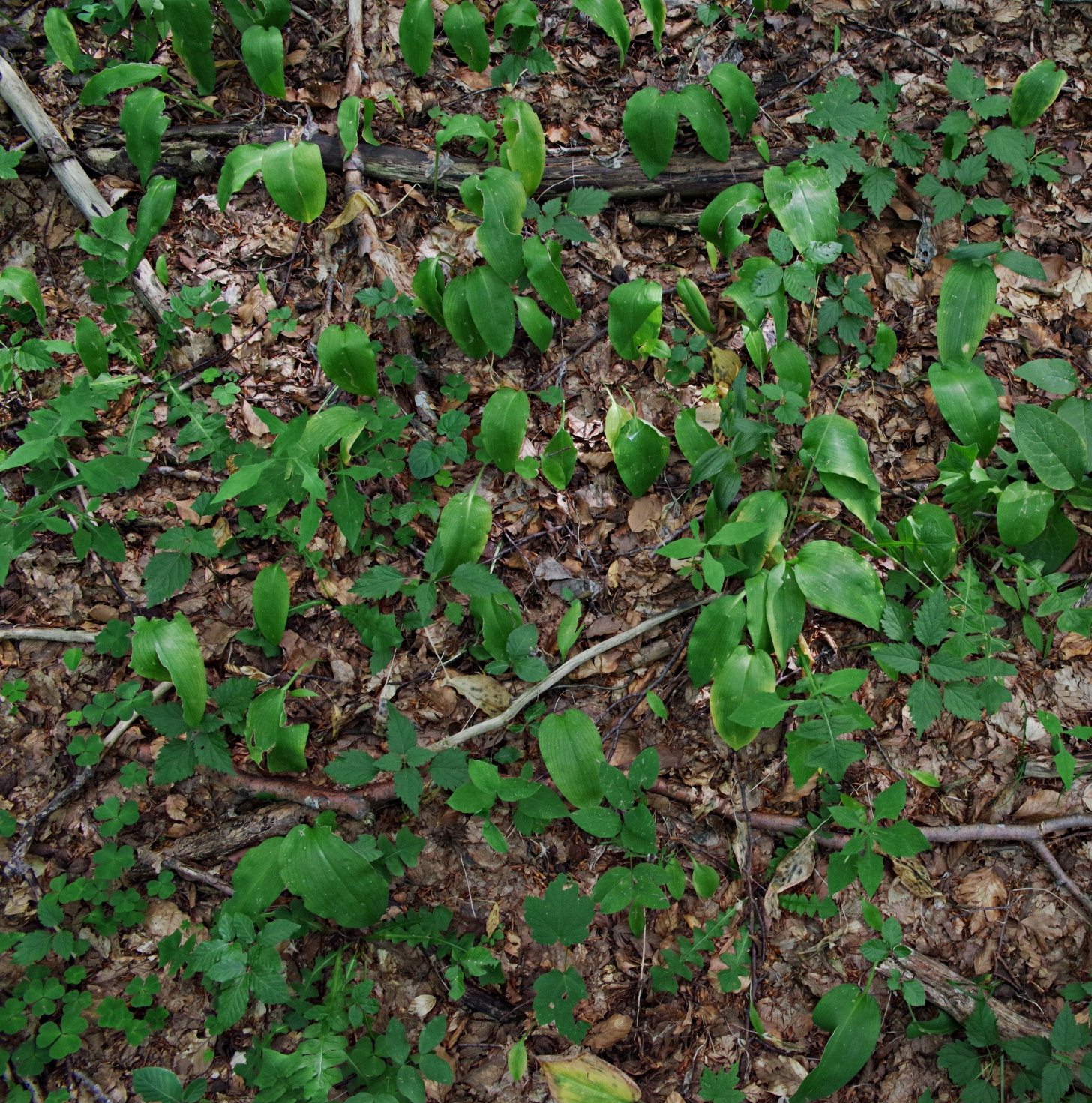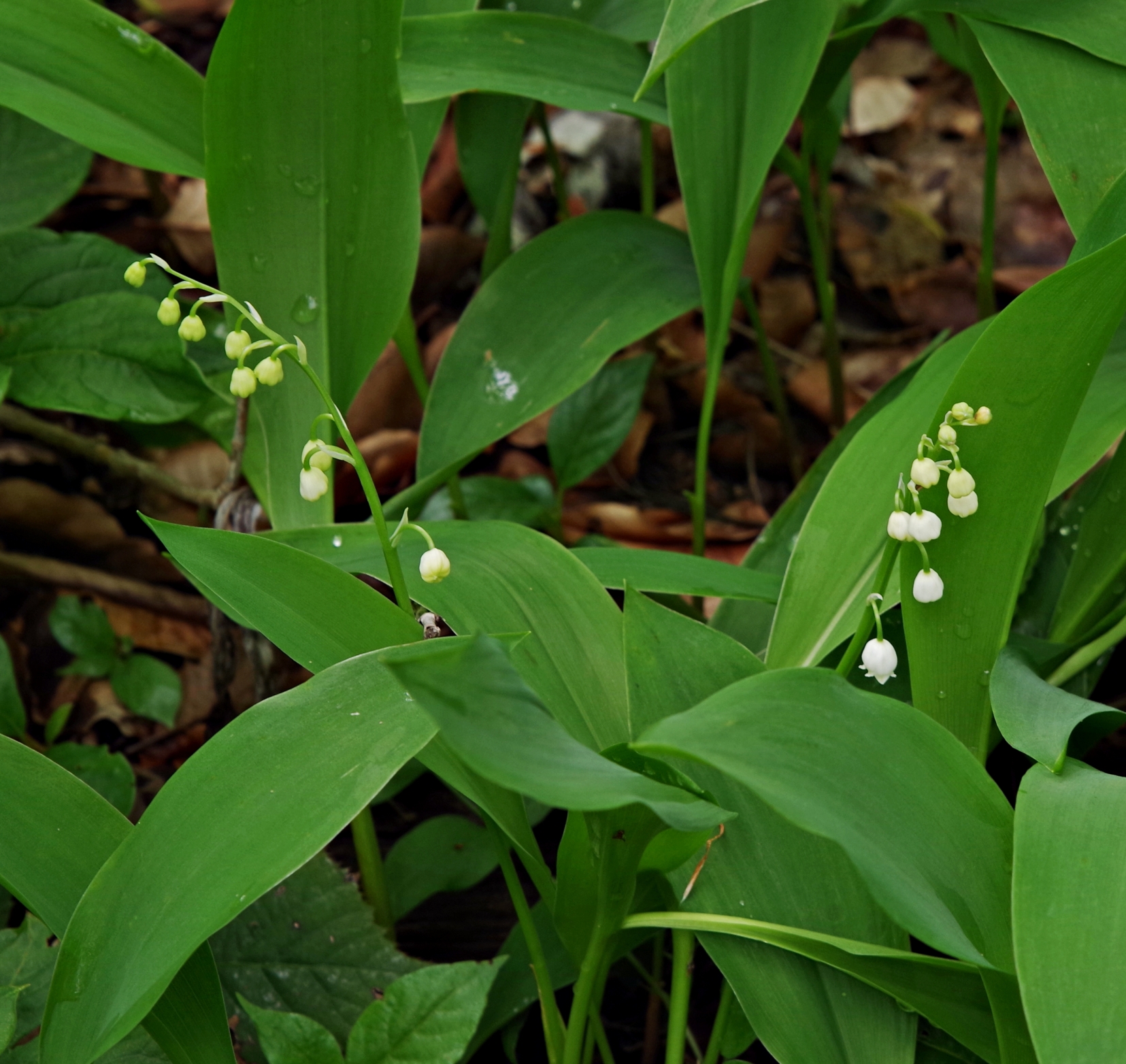 bylina (G rhiz), do 20(30) cm wys., łodyga trójgraniasta, bezlistna, liście po 2(3) u nasady łodygi, szerokolancetowate do jajowatych, zaostrzone, zbiegające w krótki ogonek, całobrzegie, do 25(30) cm dł., kwiaty w jednostronnym kwiatostanie, białe lub różowawe, pachnące, dzwonkowate, zwisające na krótkich szypułkach, do 0,9 cm dł., korona zakończona lekko odwiniętymi ząbkami, V-VI, owocem czerwona jagoda, do 1,2 cm śred.