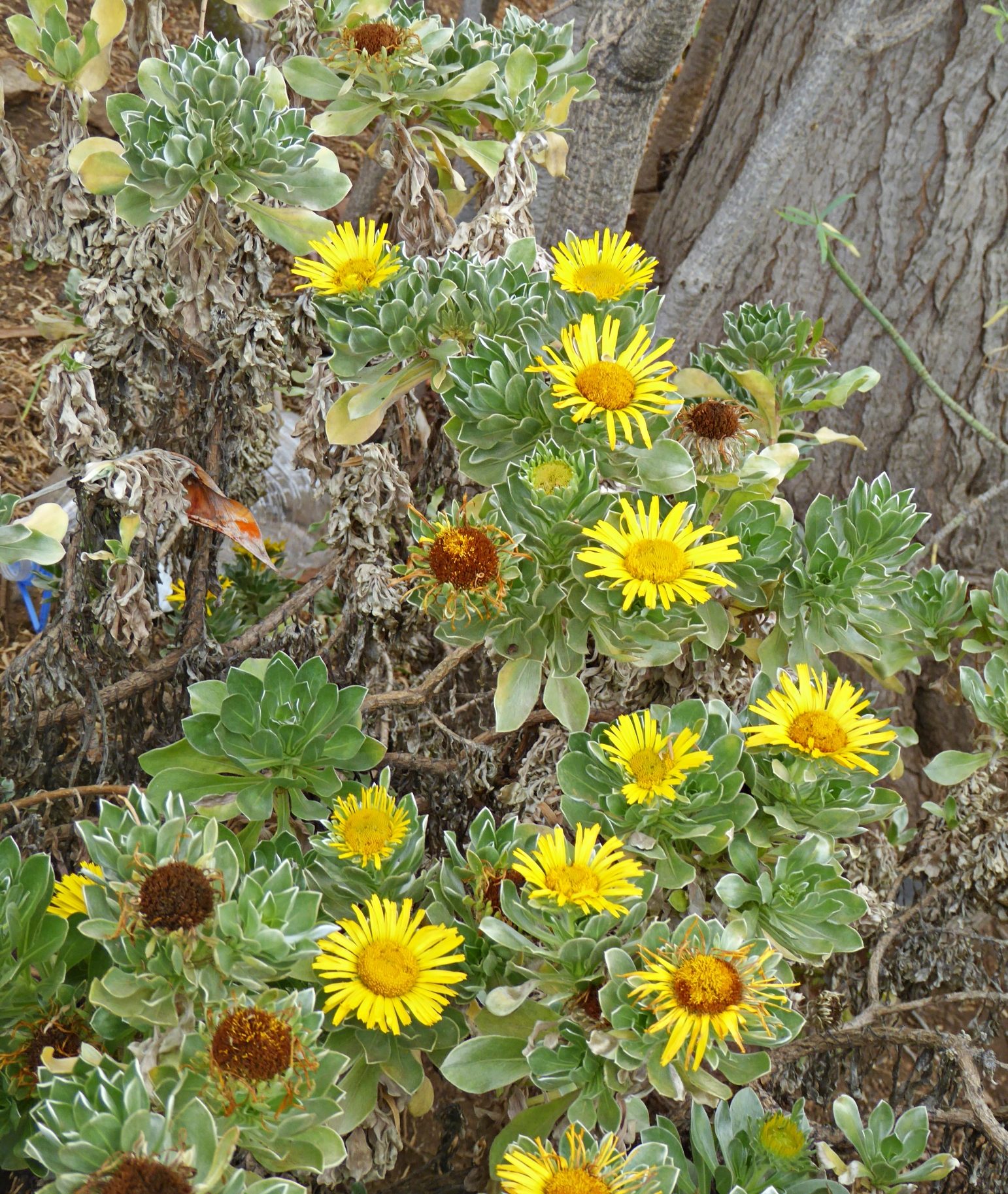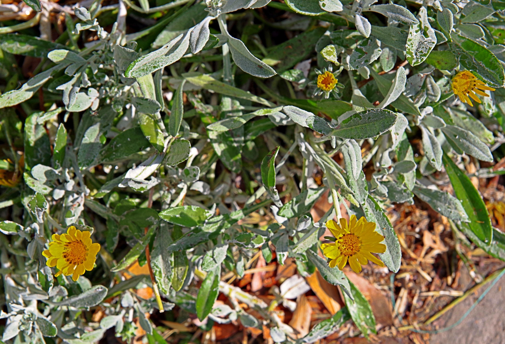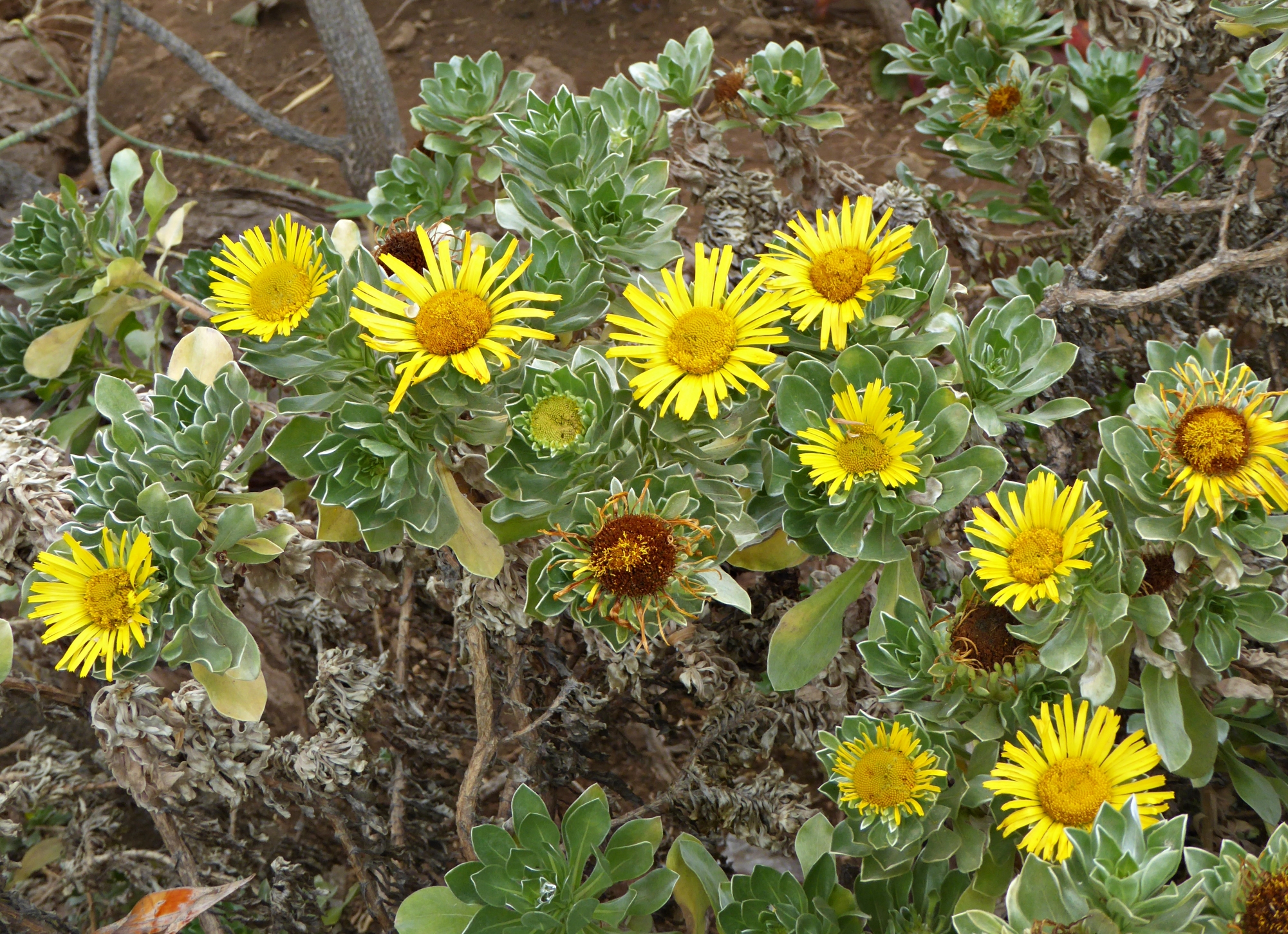 krzew (nF) do 1 m wys., mocno rozgałęziony, tworzący zwarte kępy, liście szerokołopatkowate, 3-5 cm dł., z obu stron jedwabiście owłosione, koszyczki kwiatowe na szczycie rozgałęzień, do 5(7) cm śred., kwiaty rurkowe i języczkowe złocistożółte, II-VI, owocem niełupka
