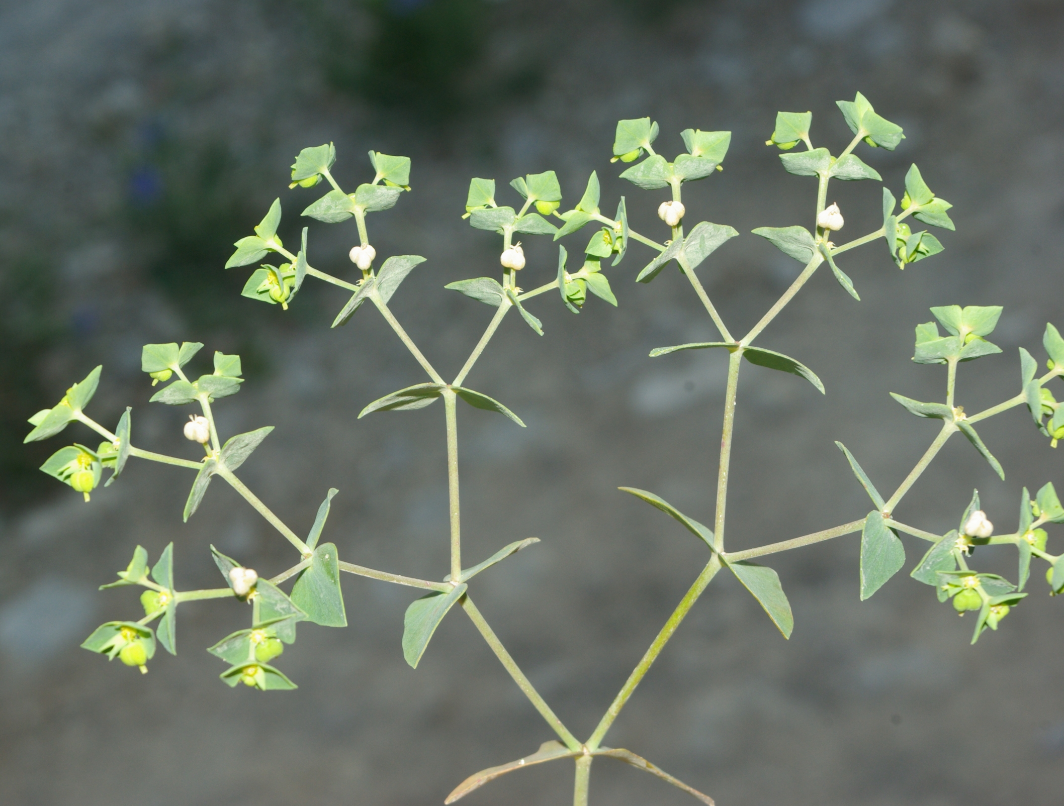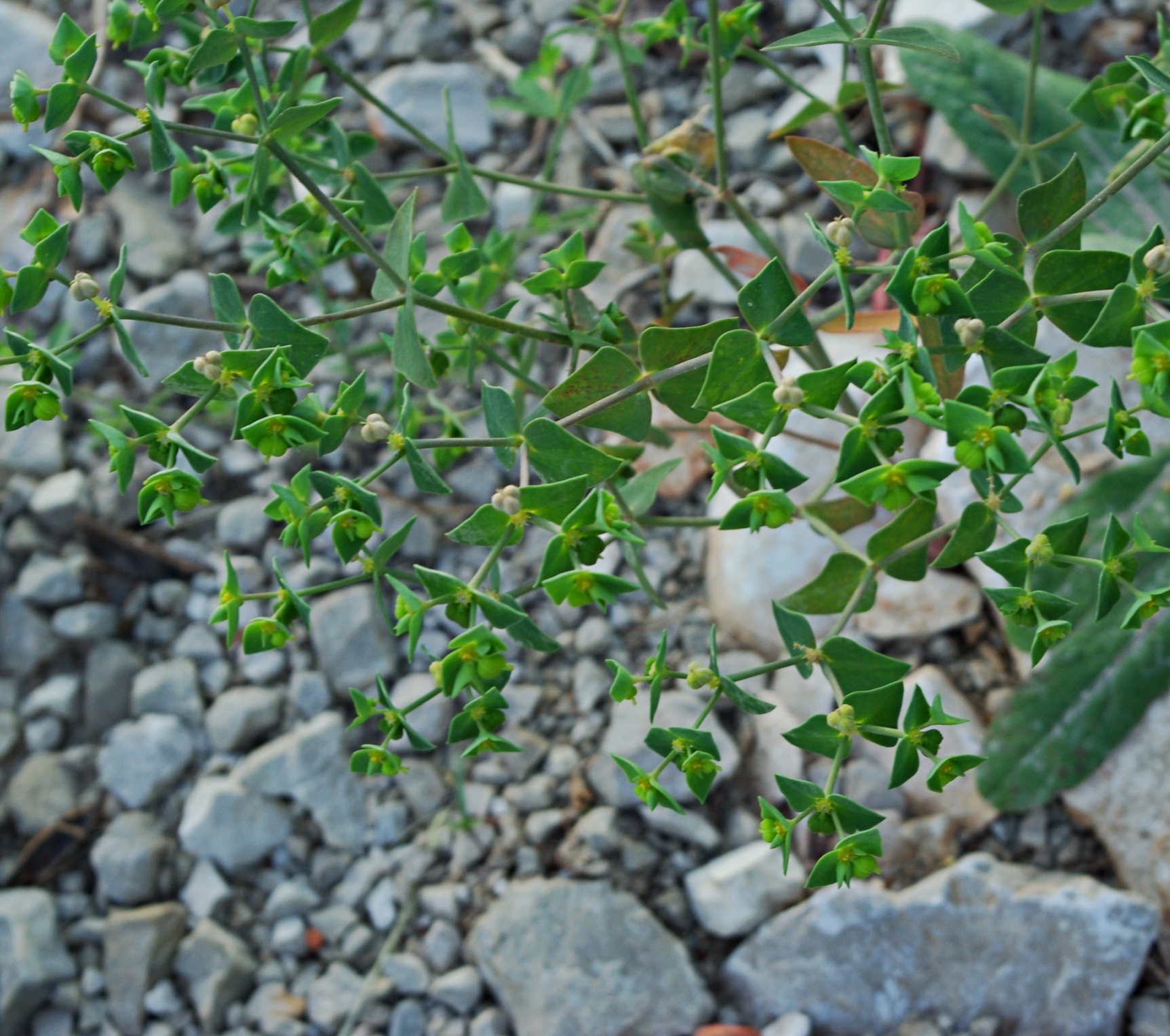 roślina jednoroczna (T), do 20(30) cm wys., łodyga naga, liście łodygowe równowąskie lub lancetowate, listki w obrębie kwiatostanu rombowate lub trójkątne, kwiatostan 4-6 gałęzisty, miodniki żółte, z 2. długimi rogami, V-VI(IX), owocem torebka gładka lub lekko brodawkowana
